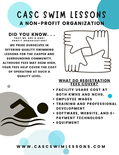 Safety is our top priority at CASC - Swimming Lessons. We have established clear and comprehensive pool safety rules to ensure a secure and enjoyable environment for all. Our experienced instructors and supervisors are dedicated to enforcing these rules and providing guidance to promote a safe swimming experience for everyone. We have trained lifeguards on deck during each session, and many of our instructors are also certified lifeguards. It is important for families and spectators to also follow safe guidelines while watching lessons. We ask that children are always supervised whether they are in the viewing area, in the locker rooms, or in the hallways. DO NOT LEAVE your children unattended. We also do not have instructors available to supervise the locker rooms or restrooms, so please accompany your children during these times. We take pride in maintaining a safe and secure swimming environment, and overall our pool safety guidelines include rules for behavior, equipment usage, and emergency procedures. By adhering to these guidelines, we create a positive and secure space for swimmers of all ages.